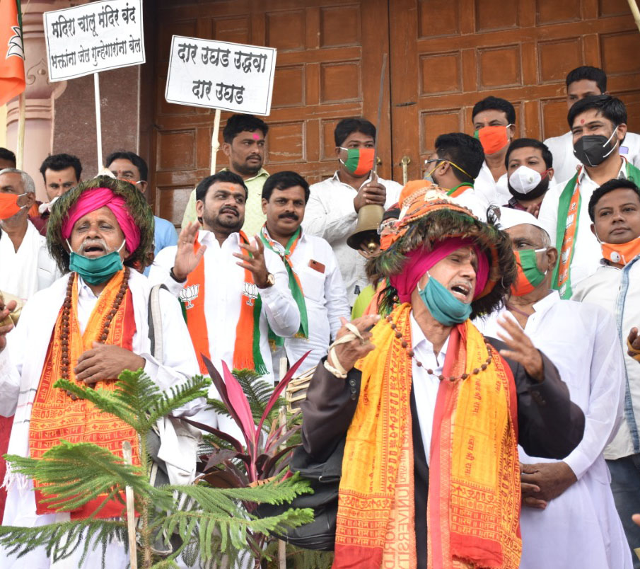 हे वाचा मंदिरं सुरु करण्याच्या मागणीसाठी ‘दार उघड उद्धवा दार उघड’ अशी हाक देत भाजप राज्यभर ठिकठिकाणी घंटानाद आंदोलन
