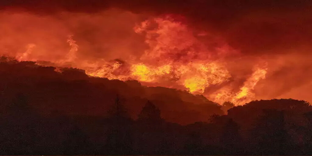 वेगाने वाहणाऱ्या वाऱ्यामुळे आग पसरली