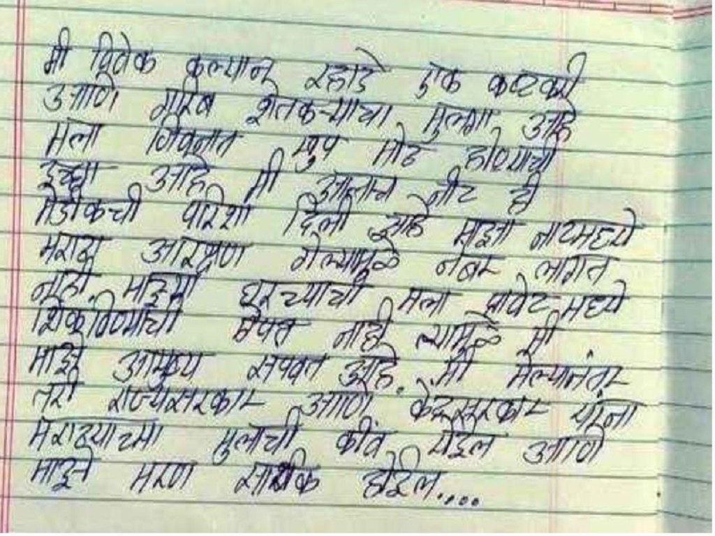 विवेक रहाडे याने ३० स्पटेंबरला आत्महत्या केली होती. त्याला नीट परीक्षेचा पेपर अवघड गेल्याने त्याने आत्महत्या केल्याचा अंदाज त्याच्या मामांनी पोलिसांकडे व्यक्त केला होता. मात्र, मध्येच ही चिठ्ठी पुढे आली. ती सोशल मीडियात व्हायरल झाली आणि प्रकरणाला कलाटणी मिळाली होती. मराठा आरक्षणाला स्थगिती मिळाल्याने आपल्याला वैद्यकीय शिक्षणासाठी प्रवेश मिळू शकत नसल्याचा मजकूर या चिठ्ठीत लिहिण्यात आला आहे.